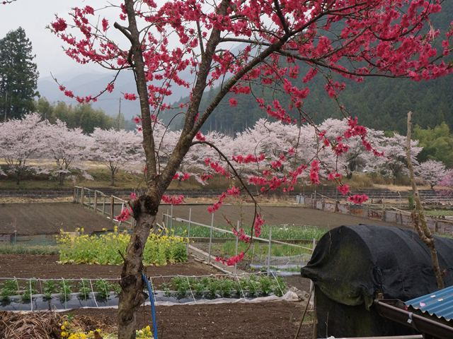 ![]() 近くの農家、その1 桃と桜 |
