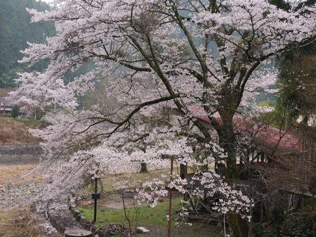 ![]() 近くの農家、その3 桜が川沿いに延々と続いている |