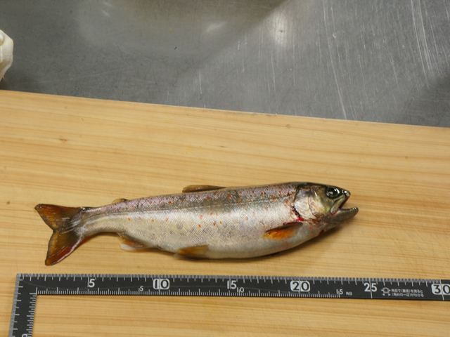 店舗すぐ下の相川でこんな幅広のアマゴが釣れました。